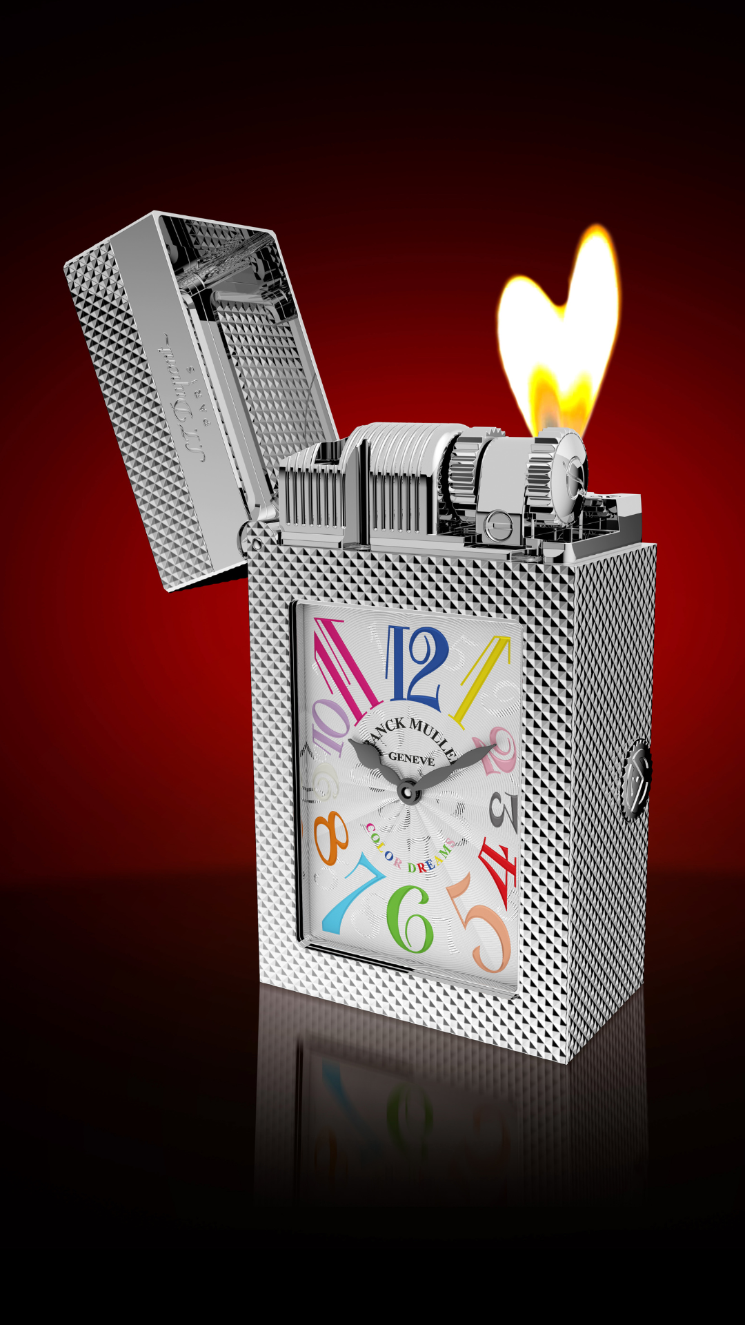 Franck Muller's signature “Swiss Made” skeleton movement with power reserve has been adapted here to create a double-sided skeleton watch with a three-day power reserve in the lighter’s body.