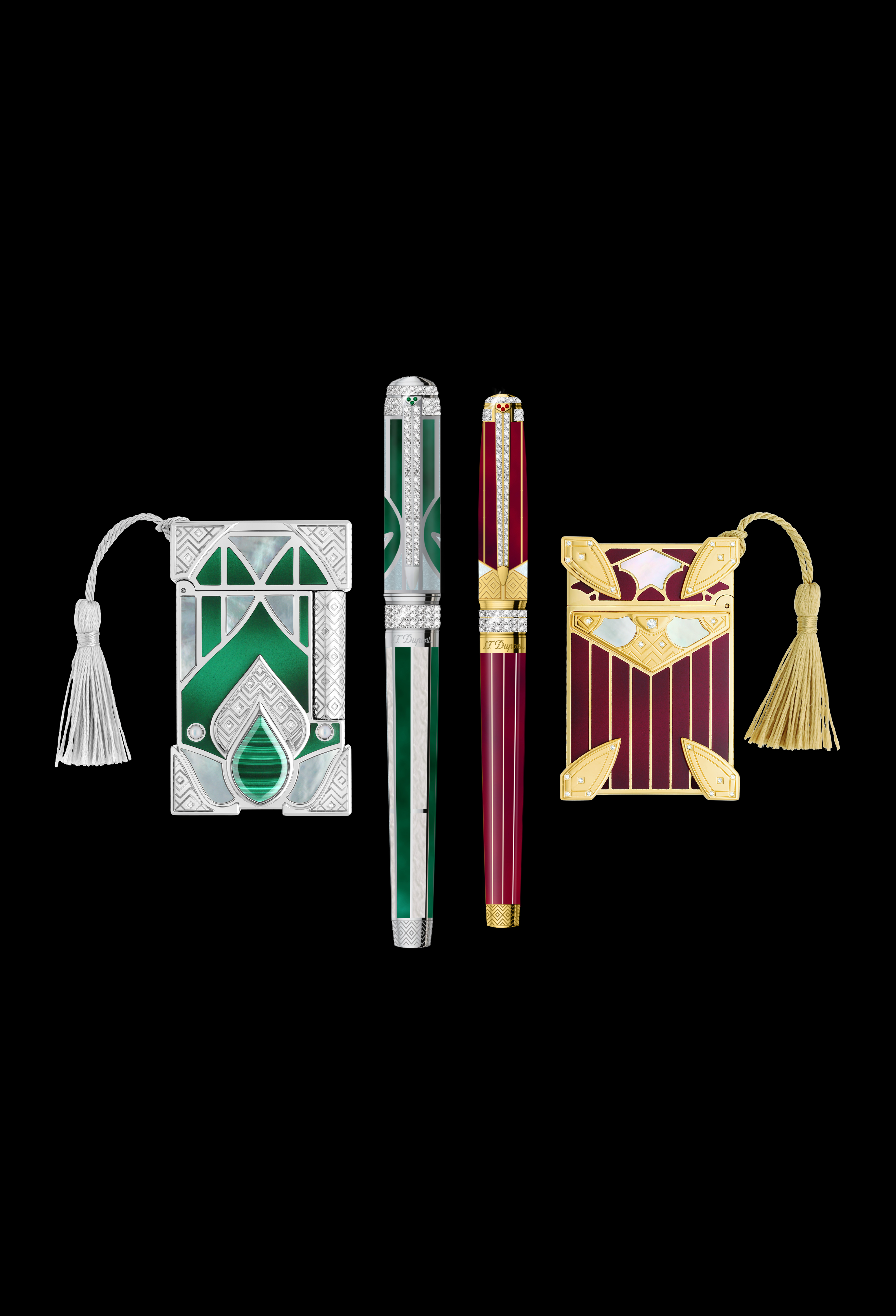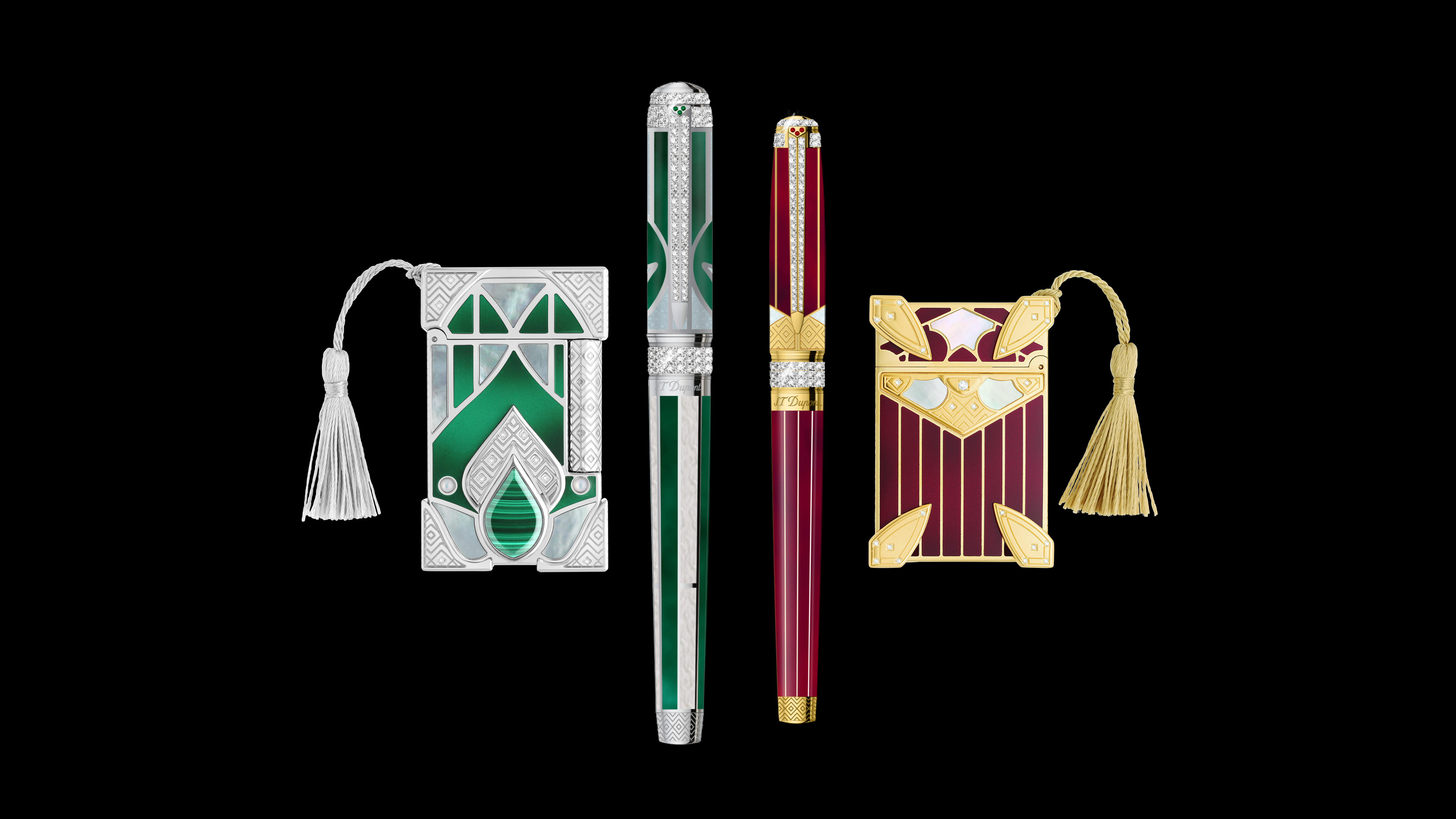 這些純金飾品以印度的輝煌為靈感,鑲嵌著數百顆鑽石,並以珍珠母貝和珍珠等珍貴材質點綴。 Maharaja Maharani 系列體現了都彭 (ST Dupont) 的卓越品質和精湛工藝。
